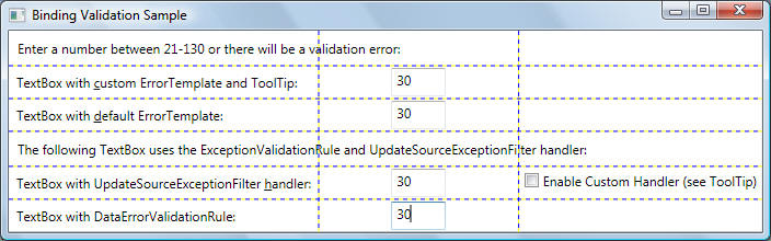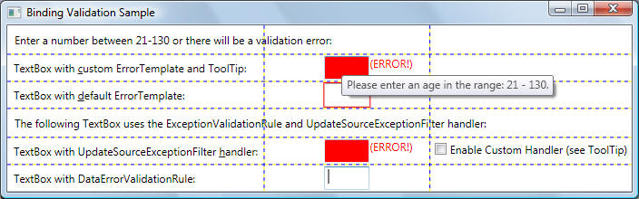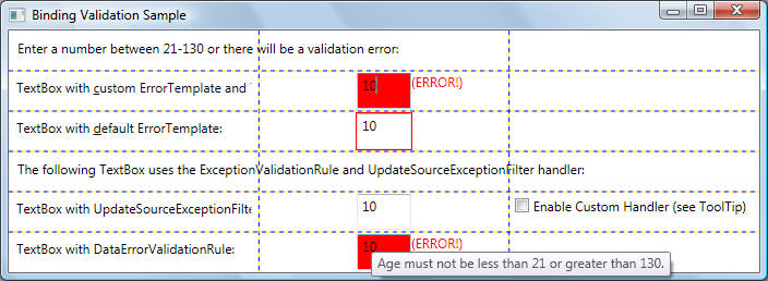 | CLR objects | You can bind to public properties, sub-properties, as well as indexers of any existing CLR object. The binding engine uses CLR reflection to get the values of the properties. Alternatively, objects that implement ICustomTypeDescriptor or have a registered TypeDescriptionProvider also work with the binding engine. Another alternative to binding CLR objects is to use ObjectDataProvider, which wraps and creates an object that can be used as a binding source. |