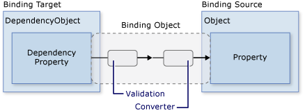 As indicated by the arrow in the figure above, the data flow of a binding can go from the binding target to the binding source (for example, the source value changes when a user edits the value of a TextBox) and/or from the binding source to the binding target (for example, your TextBox content gets updated with changes in the binding source) if the binding source provides the proper notifications.