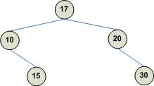 Searching this tree will take the same time (if not more) as searching an array. This is because after each comparison the problem space is reduced by 1 node and not by half of the current nodes. Therefore, the time it takes to search a BST depends on its topology, and the topology of a BST depends on the order in which nodes are inserted. Now consider adding the same nodes in the following order: 17. 10, 20, 15, 30 which result in a balanced BST (a balanced BST is one that exhibits a good ratio of depth to height):