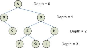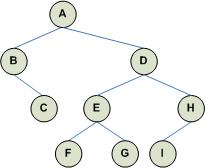 For the above binary tree, a pre-order traversal visits the node as follows: A, B, C, D, E, F, G, H, I.