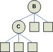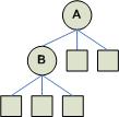 The recursive definition of a tree T = {r, T1, T2, ... , Tn} has important implications when considering the implementation of a tree. In effect, since a tree contains zero or more sub-trees, when implemented as a container, we get a container that contains other containers. The figure on the right shows the general approach used to implement the tree on the left: