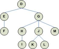 Definition: A tree is a collection of nodes. One of the nodes is designated as the root node, with the remaining nodes each being a sub-tree. For example, node D is the root node and nodes E and G are sub-trees of root node D. Nodes H, J, and M are considered sub-trees of node G, while node F is a sub-tree of node E.