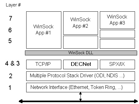 WinSock API is a programmatic plug into the network. You can plug any electrical appliance (application) into an electric socket (socket) in any house, and it will work no matter how the electricity is generated (coal, water, nuclear, etc.) In other words, you can run any TCP/IP network application on any WinSock implementation, no matter what media it runs over – Ethernet, Token Ring, Serial Line – or what company provides the TCP/IP protocol stack.