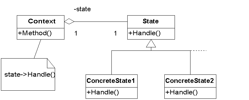 The Context class, which is the primary interface for clients, delegates state-specific requests to the current Concrete State object. The Context object can pass itself to the Concrete State object if it needs to access the Context object.
