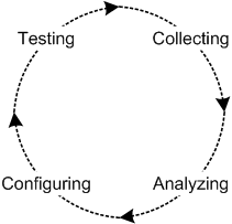 After establishing boundaries and expectations for performance tuning, you can begin the tuning cycle. As shown by the figure above, the tuning cycle is an iterative series of four (4) controlled performance experiments. These four steps are: