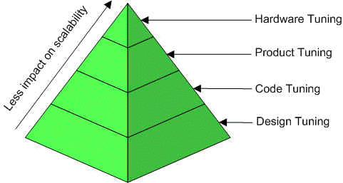 As the scalability pyramid indicates, hardware, software and code tuning are