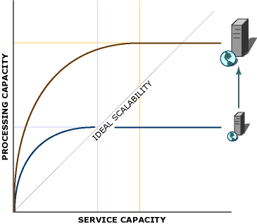 Note that scaling up does no increase capacity linearly. Instead, the