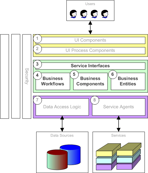 User Interfaces are implemented using Windows Forms, ASP.NET, controls, or