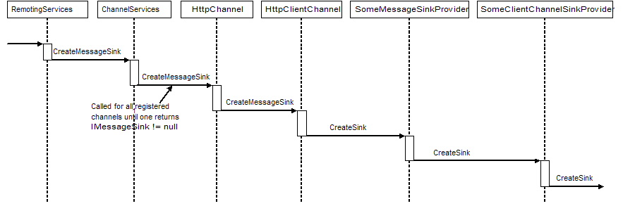 HttpClientChannel then invokes CreateSink() on the first sink provider given in the configuration file. The following code corresponds to what the different sink providers will do: