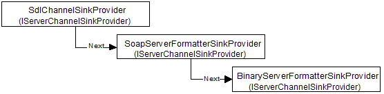 Note that the chain is setup using a chain of sink providers and not a chain of sinks (if the formatter element was expanded to include the real type as defined in the machine.config file, it would also have a type that refers to a provider, in specific, SoapClientFormatterSinkProvider.