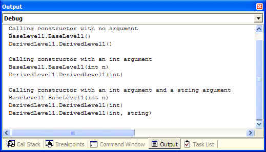 Trace.WriteLine( "DerivedLevel1.DerivedLevel1()");
