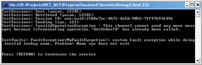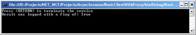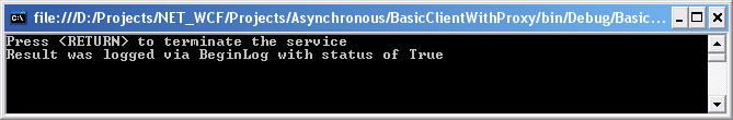 Results of executing the TestAsynchronousCalls() method (client followed by service):