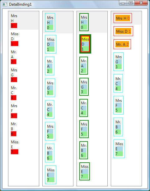 <DockPanel xmlns="http://schemas.microsoft.com/winfx/2006/xaml/presentation" xmlns:x="http://schemas.microsoft.com/winfx/2006/xaml" xmlns:c="MyNamespace"> <DockPanel.Resources> <c:MyData x:Key="myDataSource"/> </DockPanel.Resources> <DockPanel.DataContext> <Binding Source="{StaticResource myDataSource}"/> </DockPanel.DataContext> <Button Background="{Binding Path=ColorName}" Width="150" Height="30"> I am bound to be RED! </Button> </DockPanel>