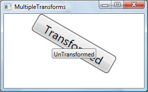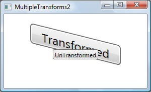 For creating more complex transformations, WPF provides TransformGroup and MatrixTransform classes. This example shows how to use a TransformGroup to group two or more Transform objects into a single composite Transform: