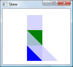 A skew, which is also known as a shear, is a transformation that stretches the coordinate space in a non-uniform manner. One typical use of a SkewTransform is for simulating 3-D depth in 2-D objects. Use the CenterX and CenterY properties to specify the center point of the SkewTransform. Use the AngleX and AngleY properties to specify the skew angle of the x-axis and y-axis, and to skew the current coordinate system along these axes: