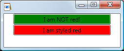 The example includes a style that applies to ALL buttons and their Background property. For the first button, the Background property is locally set, in other words, it is set directly on the object, and this locally set value takes precedence over the background that comes from the style setter. For the second button however, there is no local value, and thus the background in that button comes from the style setter.