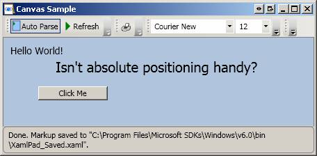 Canvas.Top="10" Canvas.Left="10" FontSize="14">Hello World!</TextBlock>