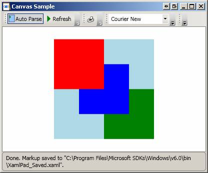 A canvas (see Canvas) is nested inside a Border element to give the Canvas a border. Note how elements on the Canvas are placed using Canvas attached properties: