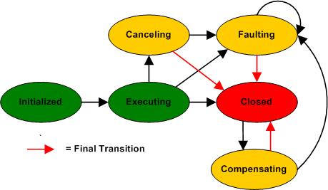 Execution: Long running business processes, and state management and compensation are determined by the work flow.