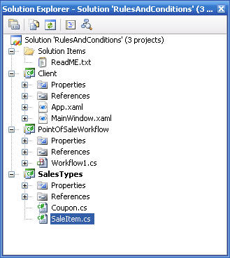 To use conditions using the Code Condition approach, create a code-condition handler (shown below) and assign it to an activity's Condition property (see next figure):